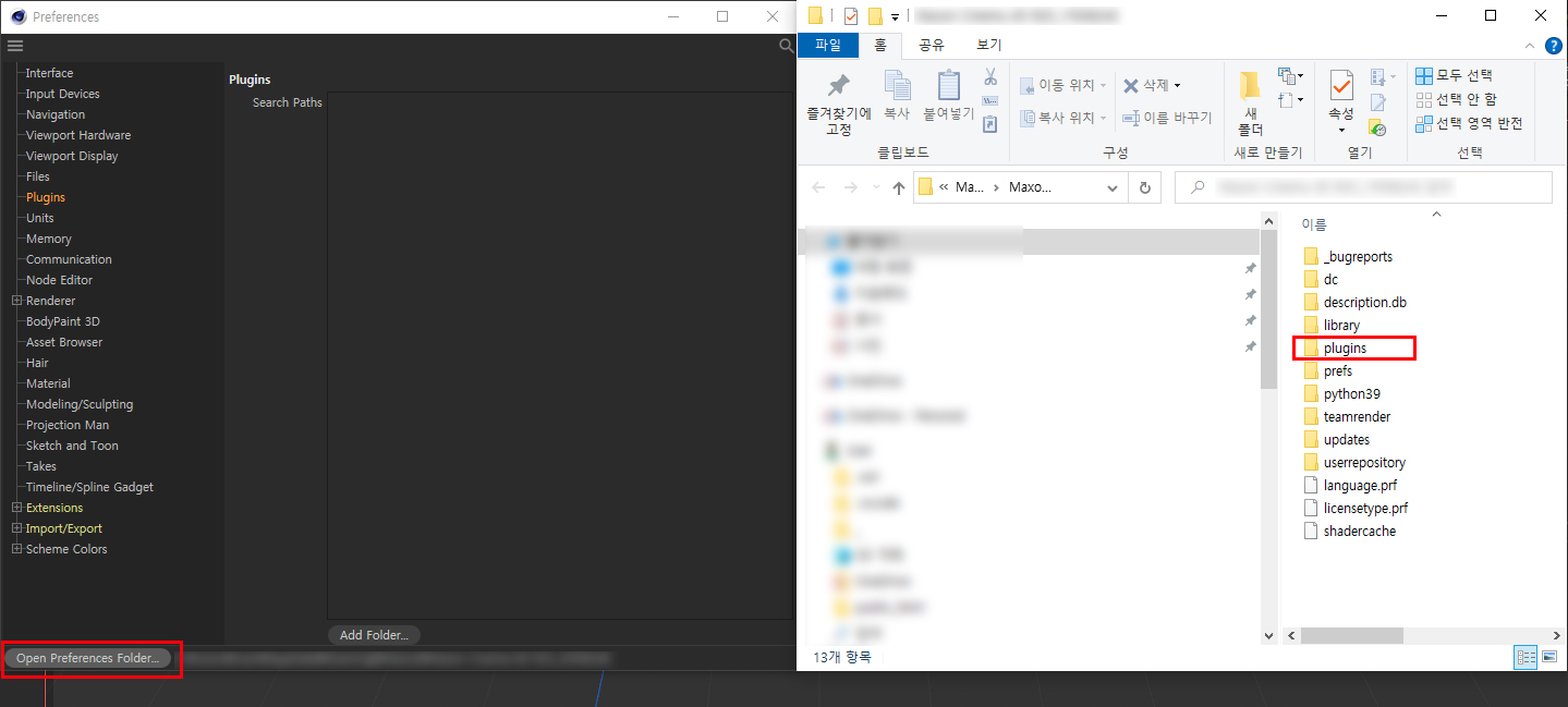 옥테인 렌더 플러그인 폴더에 넣기